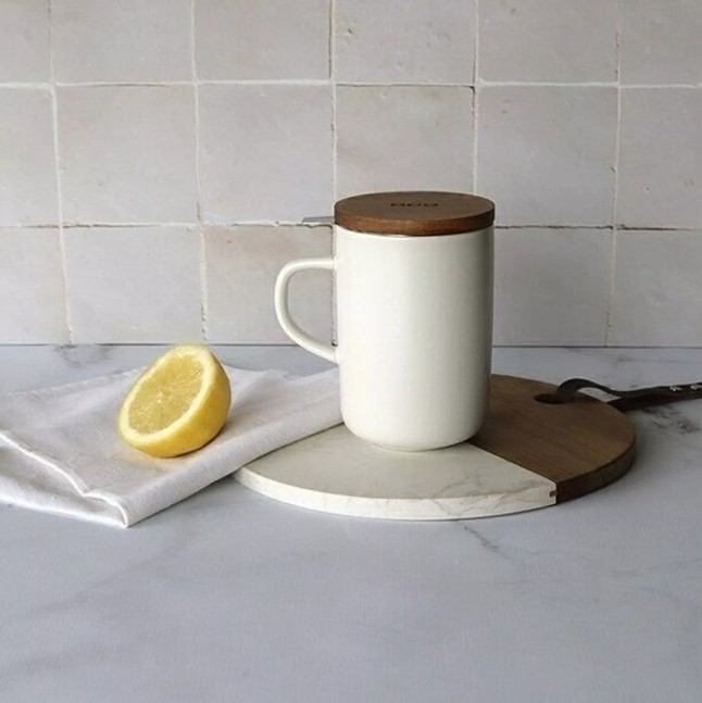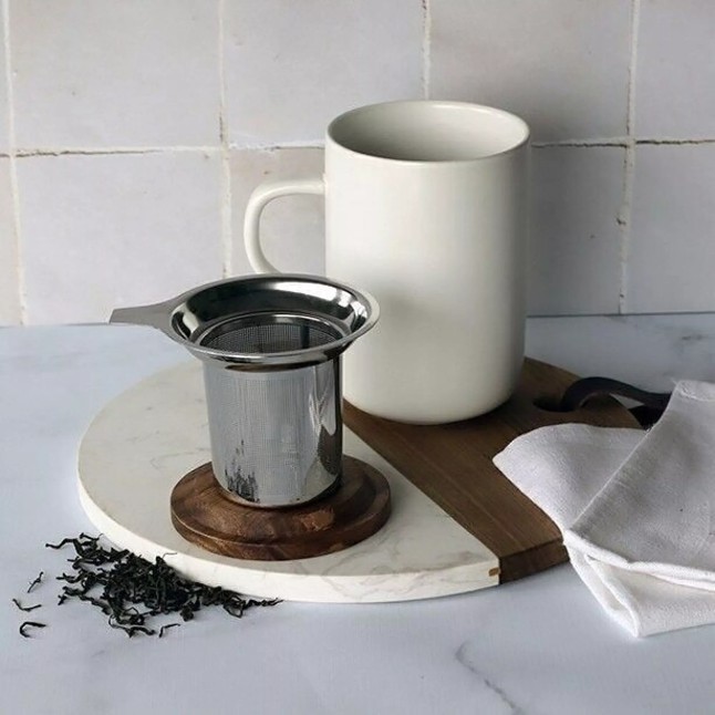Tass on varustatud mikropuuriga roostevabast terasest filtriga, mis laseb esile tulla kõikide tee aroomidel ja maitsetel. Liivakivist tass tagab ühtlase soojuse leviku, samal ajal kui akaatsiapuust kaas lisab looduslähedase ja autentse ilme. Kaaned on naturaalsed ja iga toode on unikaalne oma toonide poolest.